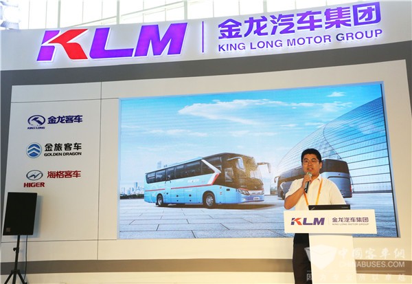 金龍客車國內(nèi)營銷總經(jīng)理鄭小虎推介龍威II代VC版和阿波龍