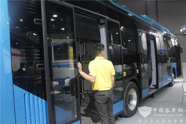該車為全承載骨架結(jié)構(gòu),采用30%高強(qiáng)度鋼混搭方式,應(yīng)用多項(xiàng)輕量化新材料,不僅為整車“瘦身減重”,而且使車輛“堅(jiān)實(shí)可靠”。車身三門全通,加車廂離地小于340mm的低地板設(shè)計(jì),讓乘客上下自如。