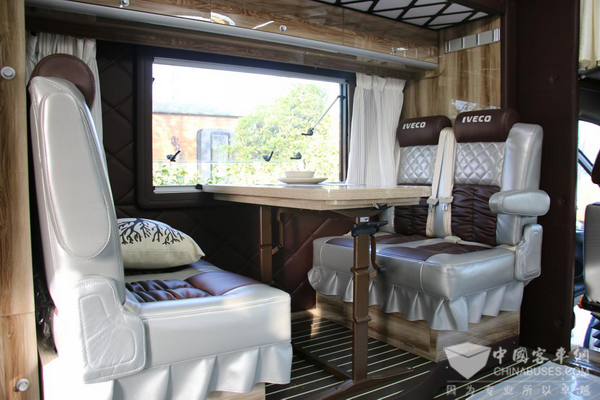 進(jìn)入車內(nèi),2018款極致至尊雙擴(kuò)展依維柯房車的內(nèi)部意在營(yíng)造高級(jí)感,配色、選材許多小細(xì)節(jié)凸顯出了精良做工,溫馨如家般氛圍也保留了中意的特色與品質(zhì),車頂部的軟包具有隔音、保溫、舒適等特點(diǎn)。內(nèi)飾不僅在選材上有更新,櫥柜、座椅、床鋪等從整體上看也更加豪華和美觀。