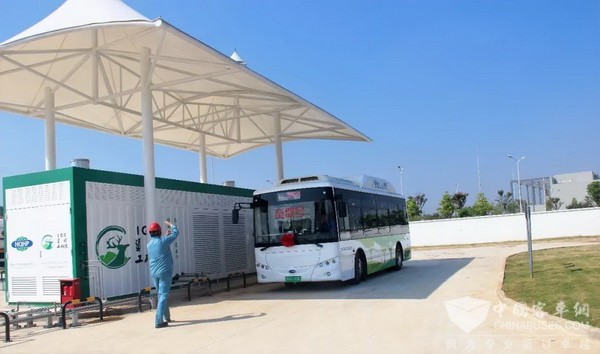 “開沃﹒泰歌”號F85氫燃料客車現(xiàn)場加氫