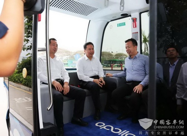 金龍客車(chē)深入貫徹習(xí)近平總書(shū)記關(guān)于“發(fā)展是第一要?jiǎng)?wù),人才是第一資源,創(chuàng)新是第一動(dòng)力”的指示要求,始終堅(jiān)持創(chuàng)新驅(qū)動(dòng),不斷掌握核心技術(shù),打造拳頭產(chǎn)品,開(kāi)發(fā)的金龍阿波龍作為中國(guó)首款 L4級(jí)無(wú)人駕駛微循環(huán)電動(dòng)巴士,技術(shù)達(dá)到國(guó)際領(lǐng)先水平。調(diào)研中,李小鵬部長(zhǎng)親自體驗(yàn)了試運(yùn)營(yíng)的金龍阿波龍,對(duì)其性能給予了充分肯定。他指出,中央高度重視人工智能的發(fā)展。在人工智能和傳統(tǒng)產(chǎn)業(yè)深度融合方面,金龍客車(chē)做了先行者。他希望金龍客車(chē)進(jìn)一步深入貫徹習(xí)總書(shū)記關(guān)于發(fā)展人工智能的指示精神,繼續(xù)堅(jiān)持創(chuàng)新驅(qū)動(dòng),不斷研究探索,為交通運(yùn)輸提供無(wú)人駕駛解決方案,為加快發(fā)展智能交通、建設(shè)交通強(qiáng)國(guó)做更大貢獻(xiàn)。他表示,下一步將在智能交通示范區(qū)建設(shè)、政策法規(guī)制定、產(chǎn)品推廣等方面支持企業(yè)發(fā)展。