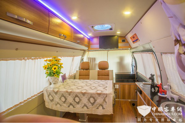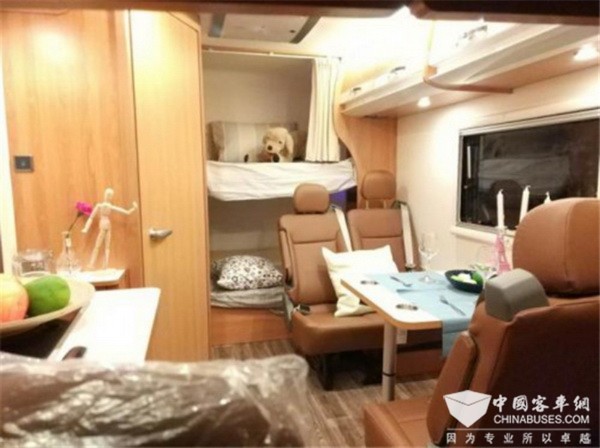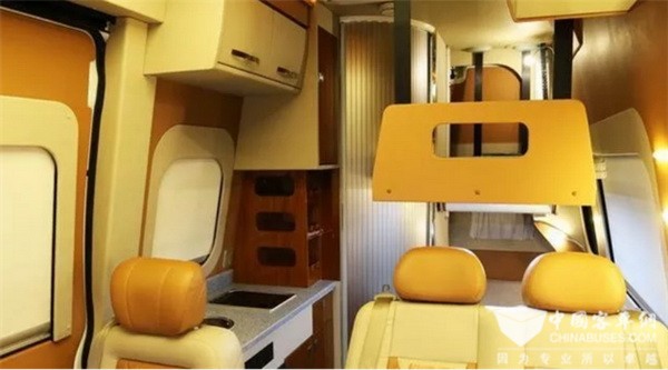 亞星歐睿采用全承載車身,其舒適性好、噪音小,全承載車身設(shè)計(jì)實(shí)現(xiàn)車內(nèi)空間最大化。車廂配置上,整體風(fēng)格溫馨帶有豪華,座椅采用皮質(zhì)包裹,同時(shí)副駕駛的座椅可向后旋轉(zhuǎn),在旅途生活中可以與車廂中的乘客面對(duì)面的溝通。車內(nèi)配置上,廚房爐灶、雙人床、衛(wèi)生間、冰箱等房車基本功能都有配備,短期短途出游完全沒有問題。