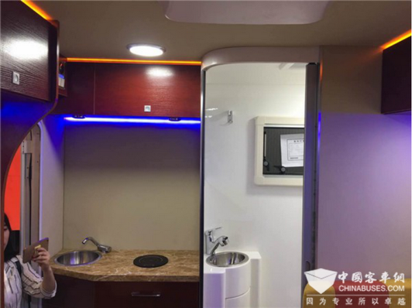SONIC系列的車載洗手間同樣堅(jiān)持合理利用空間的基本原則,結(jié)合人體工程學(xué)原理,在狹小的區(qū)域內(nèi)劃分出獨(dú)立的淋浴間、廁所和洗漱臺(tái)。人性化的設(shè)計(jì)使得一天的活動(dòng)過后也能盡情的享受沐浴的快感。合理的空間利用以及豐富的人性化生活配套設(shè)施另金龍禮賓車SONIC系列房車在同類競(jìng)品中脫穎而出,廣受市場(chǎng)青睞。