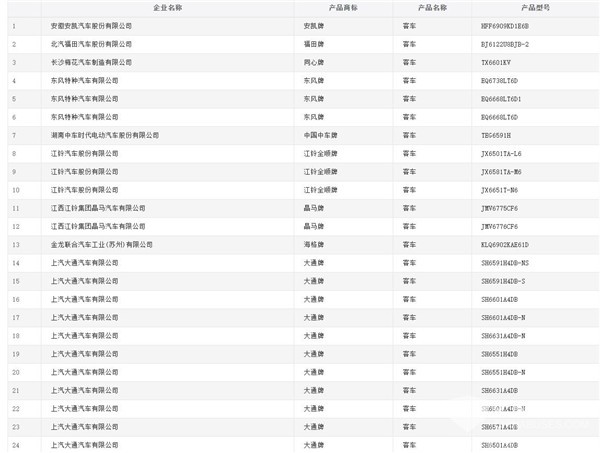 以下為申報第318批《道路機動車輛生產(chǎn)企業(yè)及產(chǎn)品公告》新產(chǎn)品公示(客車部分)