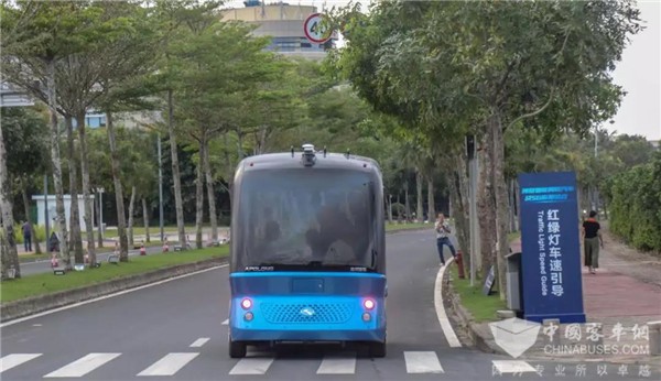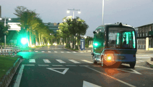 金龍阿波龍與搭載華為硬件設備的智能網(wǎng)聯(lián)信號燈互動配合,實現(xiàn)了V2X交通信號燈的識別及預判,并結合自身速度和位置進行計算,并選擇合適的速度通過路口,真正做到安全出行、智慧出行。