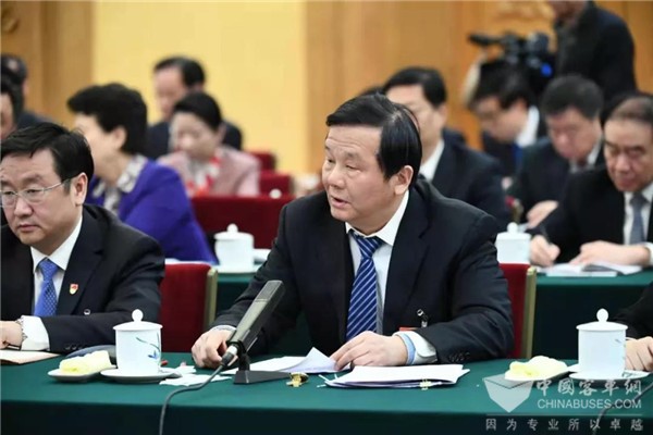 宇通集團(tuán)董事長湯玉祥圍繞“推動先進(jìn)裝備制造業(yè)走出去”作匯報(bào)