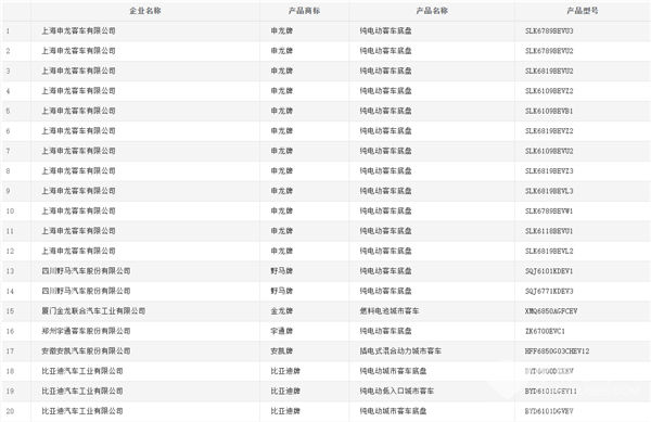 值得注意的是,在本批新產(chǎn)品公示中,中車電動(dòng)共上榜26款客車,其中18款新能源客車(含8款底盤),在本批公示的所有新能源客車中位居首位。申龍客車和東風(fēng)牌新能源客車緊隨其后,分別上榜19款和17款客車產(chǎn)品。