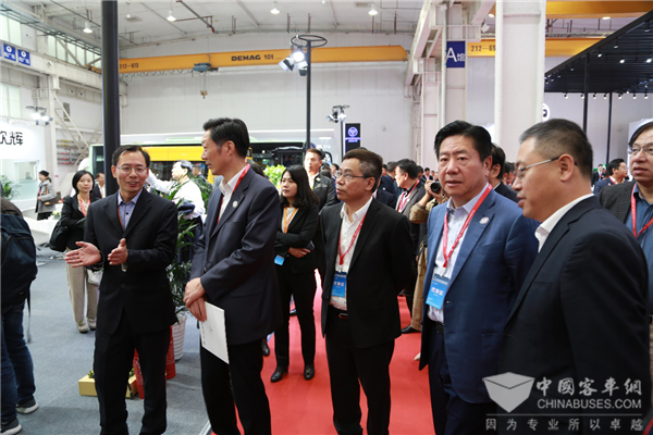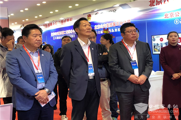 中國道路運(yùn)輸協(xié)會(huì)城市客運(yùn)分會(huì)理事長 王春杰 等領(lǐng)導(dǎo)一行參觀福田歐輝展臺(tái)  中國道路運(yùn)輸協(xié)會(huì)城市客運(yùn)分會(huì)理事長 王春杰、北京公交集團(tuán)總經(jīng)理 朱凱、福田汽車集團(tuán)業(yè)務(wù)副總裁、歐輝客車事業(yè)部黨委書記、總裁 梁兆文 共同參觀展區(qū)