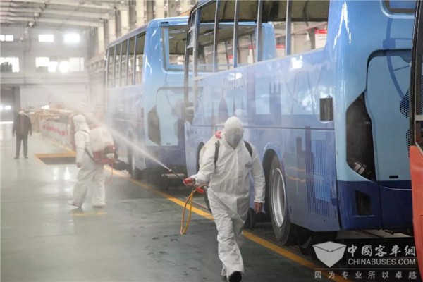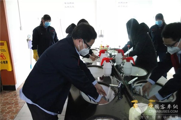 在復(fù)工首日,為保障全體員工身體健康,維護(hù)正常生產(chǎn)經(jīng)營活動,申龍客車實(shí)行嚴(yán)格的疫情防控制度。每天早晨上班員工進(jìn)入廠區(qū)都要佩戴口罩、進(jìn)行體溫測試、相互之間的接觸要保持安全距離;辦公區(qū)域進(jìn)行消毒、保持通風(fēng);員工分散就餐,公司配備洗手液,勤洗手;廠區(qū)嚴(yán)控外部無關(guān)人員的進(jìn)入,降低人員流動,切實(shí)保證全員員工的身體健康。