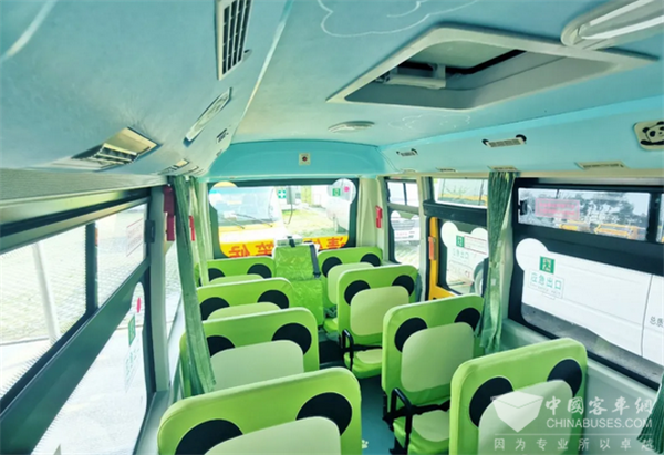全新升級內(nèi)飾的五菱熊貓校車,儀表盤更加簡潔美觀,70%以上豆青綠的內(nèi)飾設(shè)計(jì)保護(hù)了孩子的視力,車頂棚采用“藍(lán)天、白云”元素,座椅采用熊貓?jiān)兀屪谲噧?nèi)的孩子們仿佛身處大自然和大熊貓的簇?fù)碇小?/p>