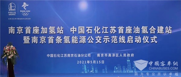 2021年5月15日,南京首座加氫站、中國石化江蘇首座油氫合建站暨南京首條氫能源公交示范線啟動儀式在高淳城北科技新城舉行,標(biāo)志著南京市“氫”能源新時代正式拉開序幕。