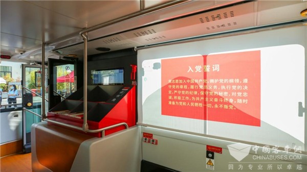 本次比亞迪純電動(dòng)雙層觀光巴士的“全妝煥新”,旨在打造沉浸式黨史教育移動(dòng)陣地。其中,“改革開放號(hào)”充分利用車內(nèi)休閑吧臺(tái)、全息沉浸式投影技術(shù)、5G+VR等設(shè)備,圍繞“紅色文化”宣傳,專設(shè)讀書角、拍照打卡等功能區(qū),配置車票打印、空氣成像、全息投影、光明網(wǎng)聯(lián)播屏等設(shè)施;車窗應(yīng)用超透材料做成了改革開放史、中國共產(chǎn)黨歷次全國代表大會(huì)、東江縱隊(duì)革命歷程等主題的宣傳展板,在學(xué)習(xí)黨史知識(shí)的同時(shí),也可欣賞深圳城市美景。