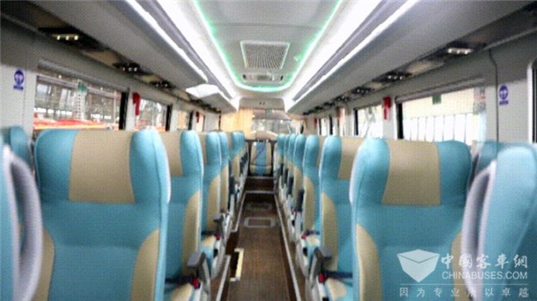車(chē)輛搭載電動(dòng)折疊電視機(jī)、可調(diào)節(jié)真皮座椅、航空式行李架、超大行李箱、下拉式遮光窗簾、USB充電口、閱讀燈、外推透氣側(cè)窗玻璃等人性化設(shè)計(jì),打造溫馨舒適的乘車(chē)空間。