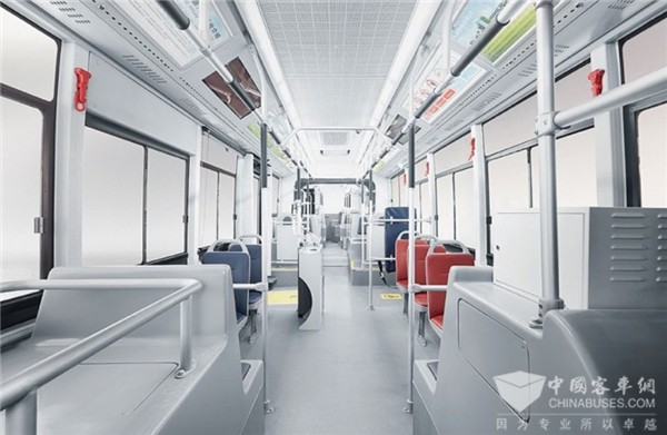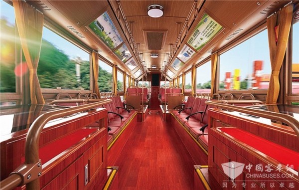 車輛外表復(fù)古,內(nèi)部配置卻不失現(xiàn)代。銀隆仿古“鐺鐺車”搭載銀隆鈦酸鋰電池,具備長壽命、耐寬溫、高安全性等特點。全車配置有LED顯示屏、車輛視頻監(jiān)控、GPS定位、WiFi、空氣凈化裝置等設(shè)備,在滿足車輛運營基礎(chǔ)性能的同時全方位提升了乘客的乘坐體驗。