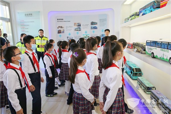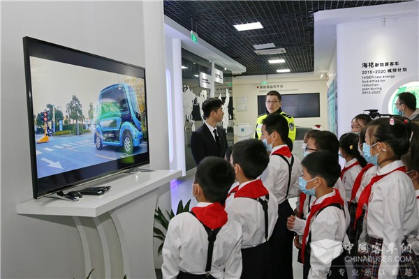 上午9:30,學(xué)生們在三位交通干警的帶領(lǐng)下走進海格客車展廳,一排排客車車模引起了學(xué)生們強烈的興趣,他們在講解員的帶領(lǐng)下知道了中國客車的發(fā)展歷程,熟悉了校車、公交車、物流車、房車、公路客車等產(chǎn)品,并通過車輛模型了解到了更多客車的安全設(shè)施。妙趣橫生的公交黑科技演講、安全知識問答、“醉酒”小游戲、身臨其境的3D未來交通視頻,將趣味游戲、知識問答、未來科技、交通安全完美融合在一起,讓學(xué)生們對于未來安全交通世界有了一個直觀的感受。參觀完海格展廳后,學(xué)生們走進斯堪尼亞•海格豪華房車,驚嘆于車內(nèi)寬敞的空間和豪華的內(nèi)飾。當(dāng)學(xué)生們知道了舉世矚目的港珠澳大橋上,有120輛斯堪尼亞•海格豪華客車作為穿梭巴士,服務(wù)往返香港、澳門和珠海的乘客,他們不由地連連說出“好厲害呀!”,“我也想坐這種車去港珠澳大橋!”