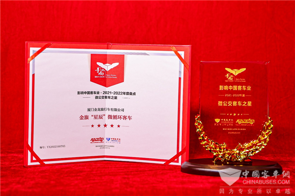 2022年2月23日,由中國客車網(wǎng)和中國土木工程學(xué)會城市公共交通分會聯(lián)合主辦的第16屆影響中國客車業(yè)年度盤點(diǎn)頒獎典禮在南京舉行。經(jīng)過影響客車業(yè)活動組委會綜合專業(yè)讀者投票和專家評委評審,金旅客車獲2021-2022年度“微公交客車之星”、“新能源客車推薦車型”和“哈薩克斯坦之星”三項(xiàng)大獎,展現(xiàn)了其具有的市場認(rèn)可度和品牌影響力。