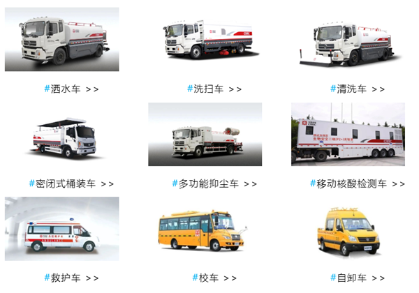 新能源專用車:針對城市清潔、城建運輸,醫(yī)療救護(hù)、工程、教育等公共服務(wù)或特殊領(lǐng)域交通運輸需求,開發(fā)了一系列環(huán)衛(wèi)車、渣運車、移動核酸檢測車、救護(hù)車等專用車型,為城市提供綠色智慧出行一體化服務(wù)。
