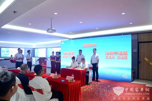 在現(xiàn)場(chǎng),宇通深圳直營(yíng)店店長(zhǎng)、深圳市宇新汽車(chē)銷(xiāo)售服務(wù)有限公司(以下簡(jiǎn)稱(chēng)“深圳宇新”)總經(jīng)理柴傳新表示,深圳直營(yíng)店將始終站在服務(wù)者的角度,以更豐富、更優(yōu)質(zhì)的產(chǎn)品和更全面、更專(zhuān)業(yè)的服務(wù)為基礎(chǔ),以客戶(hù)的需求為出發(fā)點(diǎn),為客戶(hù)創(chuàng)造更大價(jià)值。隨后作為代表與深圳市中浩易投資有限公司(以下簡(jiǎn)稱(chēng)“深圳中浩易”)簽訂戰(zhàn)略合作協(xié)議,未來(lái)雙方將在多領(lǐng)域保持長(zhǎng)期戰(zhàn)略合作,共同攜手開(kāi)啟美好未來(lái)。