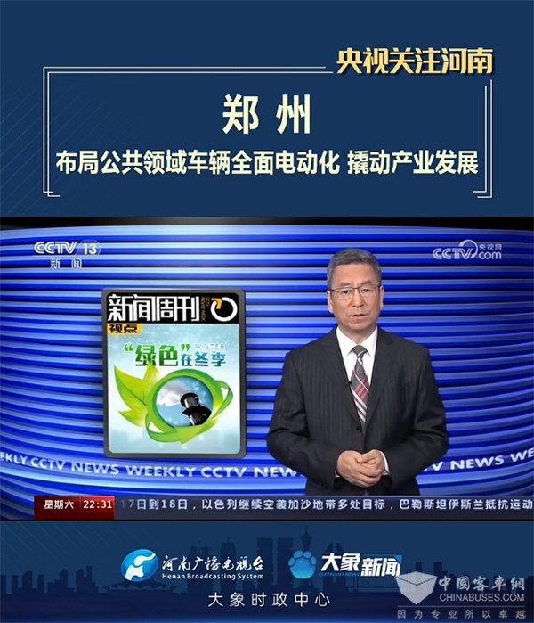 近日,央視新聞頻道《新聞周刊》再度聚焦鄭州,對鄭州布局公共領(lǐng)域車輛全面電動化進(jìn)行了報道。