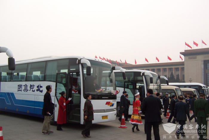 福田歐輝BJ6120U8MJB-2客車(chē)為2009年全國(guó)兩會(huì)代表團(tuán)提供用車(chē)服務(wù)