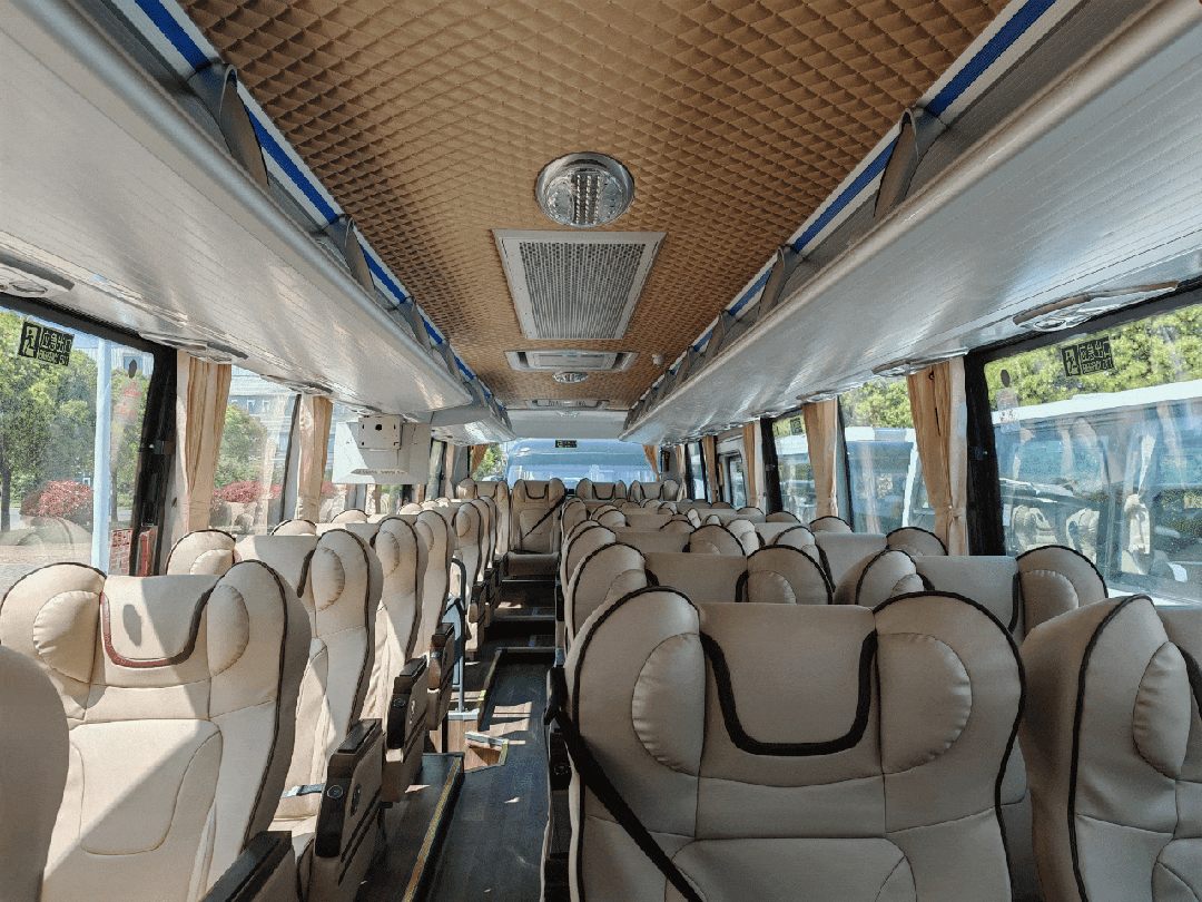 車(chē)內(nèi)整體采用梅拉德色系,深木色搭配奶白色,頂板菱形軟包,為乘客營(yíng)造家一般的“松弛感”,為每一次出游提高乘車(chē)視覺(jué)舒適度。車(chē)廂內(nèi)高超過(guò)1.9米,乘客車(chē)內(nèi)過(guò)道通過(guò)舒適,頭部空間更大。