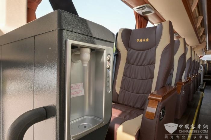 為打造國賓級服務,提升長途旅行體驗,蘇州金龍這批車輛采用2+1座椅布局,配備飲水機、兩臺22寸電視、超大行李艙和無線麥克風等娛樂設施,同時每個座椅均設USB充電插口,既充分滿足游客旅行中的各種休閑需求,又兼顧手機充電等細節(jié),為游客營造了溫馨舒適的“移動之家”。
