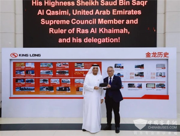 2024年9月9日,前來參加第二十四屆中國國際投資貿(mào)易洽談會的阿聯(lián)酋聯(lián)邦最高委員會成員、哈伊馬角酋長薩歐德一行訪問廈門金龍聯(lián)合汽車工業(yè)有限公司(以下簡稱“廈門金龍”),廈門市人大常委會黨組副書記、副主任李偉華、廈門市外辦主任張權(quán)、廈門金龍汽車集團副總裁、廈門金龍黨委書記、董事長劉志軍等陪同參觀。