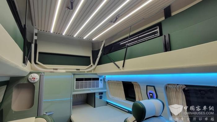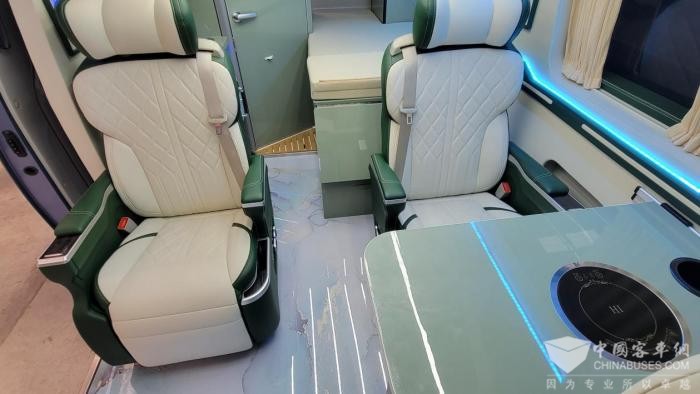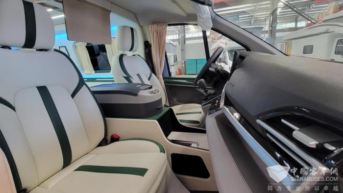 來到車身內(nèi)部,一下就被它的溫馨和舒適所打動。可布局4座商務(wù)座椅組合或6人對卡座版,空間利用率高,坐乘舒適安全;四柱電動硬升頂結(jié)構(gòu),在保溫隔熱與便利性同時完善了整車的防水性,只需通過一鍵升頂,內(nèi)高可以達(dá)到1930mm,方便駐車狀態(tài)的起居活動空間。