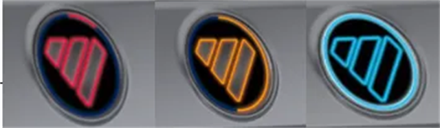 特別要說的是前后圍的福田logo,外形采用了精致的鉆石形狀設(shè)計,色系選用凈空藍色,并設(shè)置了多種發(fā)光模式,聚合了功能性與美觀性;車標(biāo)分為三種發(fā)光模式,分別是迎賓模式、行駛模式與充電模式;在車輛啟動的時候,車標(biāo)燈光會自外環(huán)12點方向順時針點亮,并伴隨呼吸感效果;在車輛正常行駛時,鉆石車標(biāo)會進入常亮模式;在充電時,車標(biāo)會根據(jù)充電電量顯示不同狀態(tài),充電電量小于30%,車標(biāo)呈紅色呼吸狀,充電電量處于30%~70%之間,車標(biāo)識呈曦日橙色呼吸狀,充電電量大于70% 車標(biāo)識將呈現(xiàn)凈空藍色呼吸狀,讓司機在車外也能清晰的了解到車輛的充電狀態(tài)。同時,車標(biāo)還具有透雷達波的功能,提高了車輛的輔助操控性與安全感。