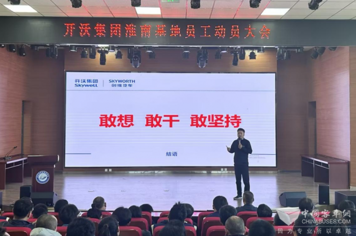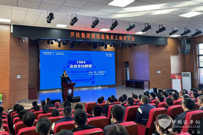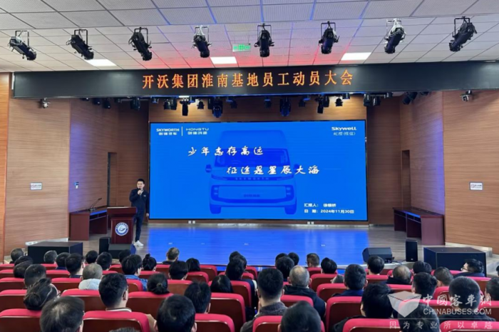 2024年11月30日上午,開沃汽車(淮南)有限公司在淮南高新區(qū)山南四中報告廳召開員工動員大會。本次大會以“直面挑戰(zhàn),成為最好”為主題,旨在激發(fā)每一位員工的內(nèi)在潛能,鼓勵大家在面對市場競爭等挑戰(zhàn)時,能夠勇往直前,不斷超越自我。160多名淮南開沃干部員工參加了大會,在南京支援生產(chǎn)的同事線上參加。