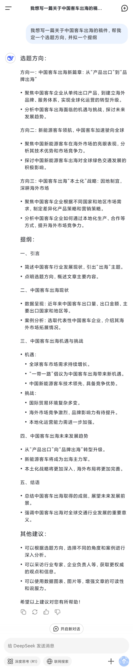 - 2025年中國客車出海更上一層樓?來看DeepSeek如何作答[02-08]