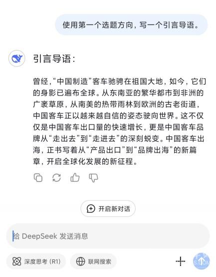 2025年中國客車出海更上一層樓?來看DeepSeek如何作答
