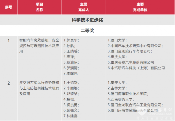 中國客車網(wǎng)2025年2月28日獲悉,日前,根據(jù)《福建省人民政府關(guān)于2023年度省科學技術(shù)獎勵的決定》(閩政文〔2025〕28號),金龍汽車集團獲得5項省科學技術(shù)獎,旗下權(quán)屬企業(yè)廈門金龍聯(lián)合汽車工業(yè)有限公司獲得二等獎1項,三等獎2項,廈門金龍旅行車有限公司獲得二等獎1項,三等獎1項。