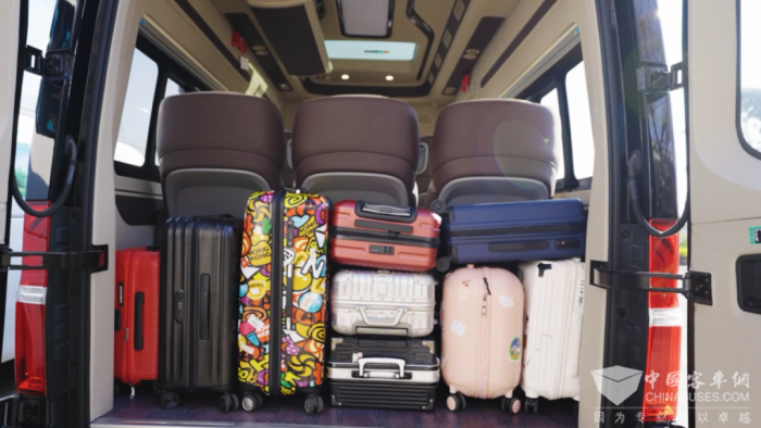 大空間、更舒適,也讓宇通天駿V6實力匹配游客出行的真實需求。深度游游客常攜帶攝影器材、戶外裝備等大件行李。天駿V6創(chuàng)新設(shè)計后置獨立行李艙,與客艙物理隔離,車內(nèi)1890mm超高空間與340mm寬過道,讓乘客可自由站立舒展,搭配商務(wù)座椅、USB接口及雙層儲物格,營造“移動會客廳”般的舒適體驗。茶花旅游總經(jīng)理王震濰談到:“宇通天駿V6車身較高,空間也更寬敞,座椅舒適,不僅極大地提升了乘客的乘坐體驗,寬敞的行李艙也完美解決了游客深度游攜帶大量行李的困擾,贏得了乘客和旅行社的高度贊譽。”