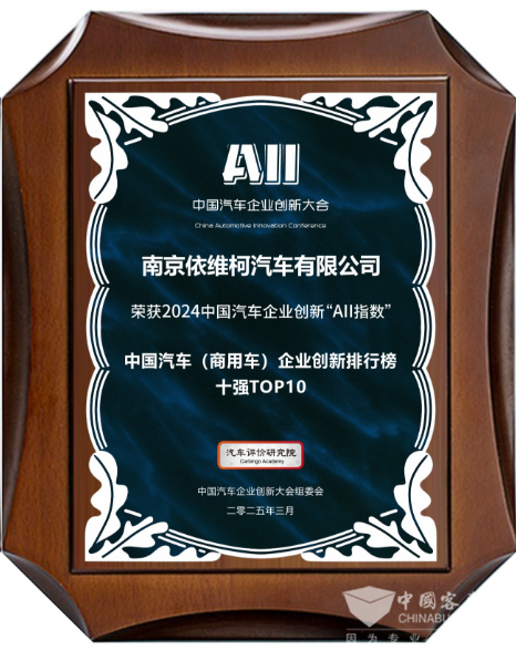 2025年3月21日,汽車評(píng)價(jià)研究院在上海舉辦的第八屆中國汽車企業(yè)創(chuàng)新“安亭指數(shù)”正式發(fā)布。南京依維柯憑借優(yōu)秀的創(chuàng)新能力,榮獲中國汽車(商用車)企業(yè)創(chuàng)新排行榜TOP10和中國汽車(商用車)企業(yè)創(chuàng)新排行榜客車企業(yè)TOP5榮譽(yù),為商用車行業(yè)創(chuàng)新樹立了典范。