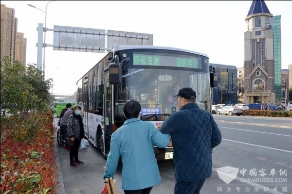 傍晚,完成透析的患者在家人的陪伴下乘坐合肥公交“透析專線”回家