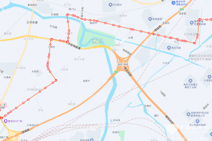 途經(jīng)紫丹路-永豐大道-石楊路-應(yīng)天東街-國際路-校場大道-卡子門大街輔路。