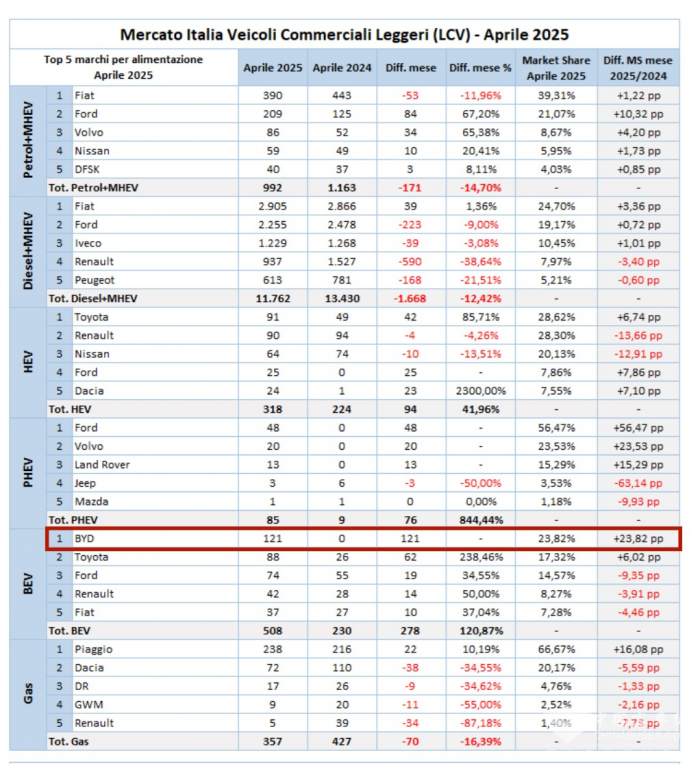4月市占率位居首位!比亞迪輕型商用車領(lǐng)跑意大利市場(chǎng)