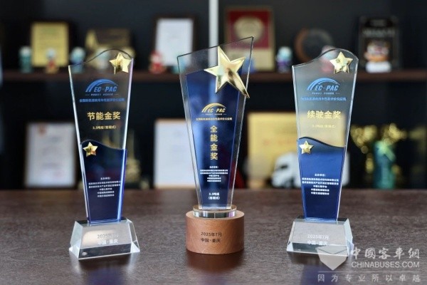 客車網(wǎng)2025年7 月16日獲悉,近日,以“零碳新動(dòng)力貨運(yùn)新征程”為主題的2025 EC-PAC全國(guó)新能源商用車性能評(píng)價(jià)公益賽在重慶圓滿落幕。本次盛會(huì)匯聚了多家行業(yè)領(lǐng)軍企業(yè)、權(quán)威專家學(xué)者,在嚴(yán)苛標(biāo)準(zhǔn)的檢驗(yàn)下,遠(yuǎn)程新能源商用車集團(tuán)旗下的重磅全新力作——全新遠(yuǎn)程星享V7E憑借卓越的綜合性能與技術(shù)實(shí)力,一舉斬獲3.5噸組(客廂式)“全能金獎(jiǎng)”、“節(jié)能金獎(jiǎng)”及“續(xù)駛金獎(jiǎng)”三項(xiàng)大獎(jiǎng),這不僅是對(duì)產(chǎn)品卓越性能的權(quán)威認(rèn)證,更是對(duì)遠(yuǎn)程新能源商用車深厚技術(shù)底蘊(yùn)與創(chuàng)新引領(lǐng)實(shí)力的集中彰顯。