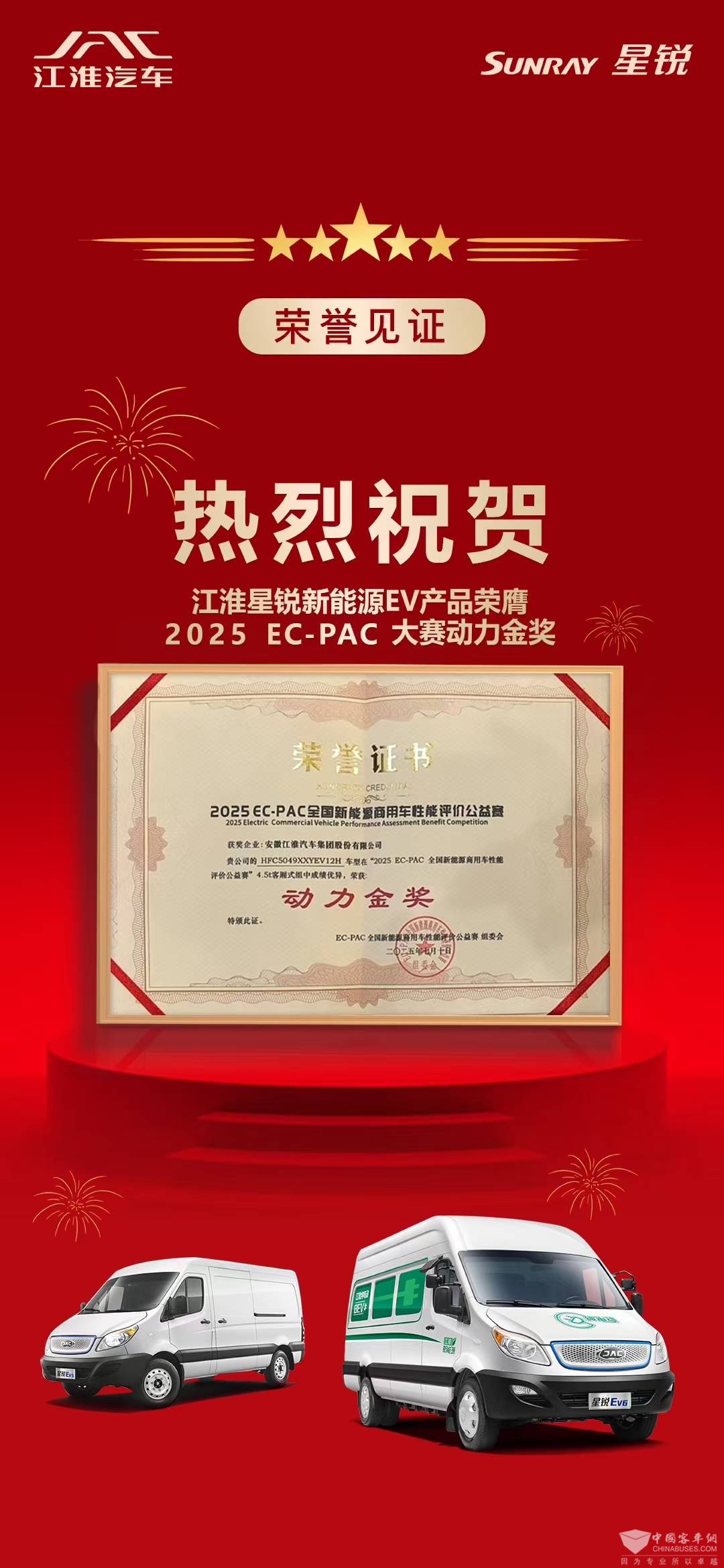 當(dāng)前位置: 客車(chē)網(wǎng) > 新聞 > 客車(chē)新聞 > 喜報(bào)!江淮星銳新能源EV緣何斬獲2025EC-PAC大賽動(dòng)力金獎(jiǎng)?