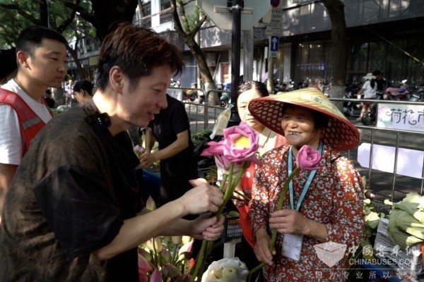 荷花市集位于蘇州古城白塔西路。每天清晨五六點,伴著晨光和蟬鳴,挑著竹筐的阿婆們,就已經(jīng)裝點起了整條市集街道。為了保證家住東山的荷農(nóng)們能夠趕上早市,荷花專線公交雖然凌晨4:30從東山鎮(zhèn)準時發(fā)車,但它會提前抵達站臺,為大家搬運貨物上車預留出充足的時間。早起的荷農(nóng)們順利坐上這趟班車后,不僅能放下肩上的沉甸甸的荷花、蓮蓬,還能在座位上小憩,既舒適、又不耽誤時間。77歲的朱云良老伯表示:"趕早市荷花更新鮮,能多賣三成價錢。"車廂內(nèi),荷農(nóng)們帶著裹著荷葉的花苞和歡聲笑語,55分鐘的車程成為農(nóng)戶們短暫休憩的"移動驛站"。
