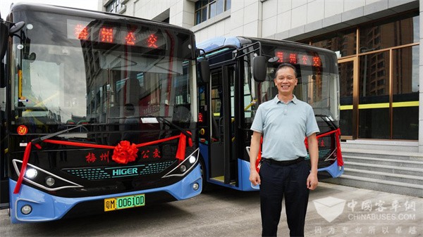 梅州公交總經(jīng)理蔡健海與海格公交合影
