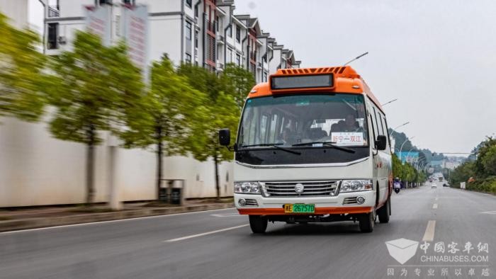 當(dāng)一輛輛橙色涂裝的金旅客車駛過崀山5A級(jí)景區(qū),駛進(jìn)黃龍鎮(zhèn)、清江橋鄉(xiāng)、瑤族鄉(xiāng),穿梭于山地丘陵時(shí);