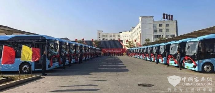 百臺(tái)新車(chē)煥新顏!金龍客車(chē)105輛新能源公交交付泉港