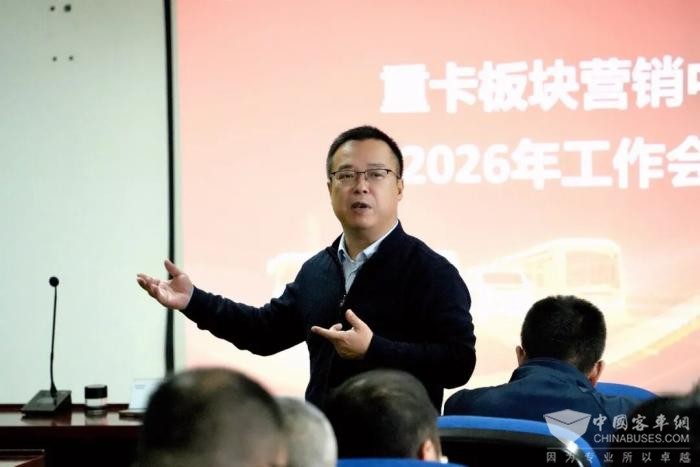 隨后,會議進入高效務實的核心議程。營銷體系各負責人依次登臺,基于詳實數(shù)據(jù)對2025年度的服務售后情況與各區(qū)域市場表現(xiàn)進行了深度復盤與匯報。在此基礎上,客車、輕客、卡車、環(huán)衛(wèi)及換電等各核心業(yè)務板塊負責人,相繼發(fā)布了2026年銷售戰(zhàn)略,清晰勾勒出新一年的進攻藍圖。