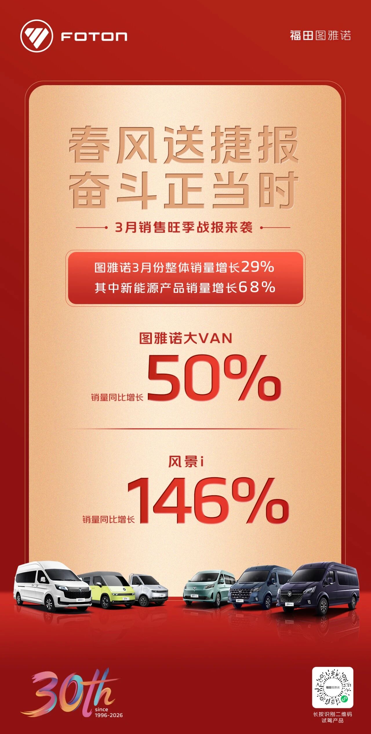 福田圖雅諾3月銷量狂飆!新能源暴漲68%,風景i猛增146%