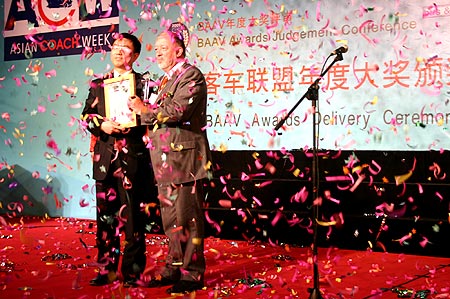 【中國客車網訊】:為期三天的2005世界客車博覽會亞洲展覽會于17日降下帷幕,然而這幾天的精彩畫面讓記者咀英嚼華、回味良多。最讓記者印象深刻的是15日晚BAAV頒獎典禮上,鄭州宇通客車股份有限公司副總王文兵先生領取世界客車聯(lián)盟“年度最佳客車制造商”所說的一通話:“世界的客車在中國,中國的客車在宇通,宇通客車愿意與國內同行共同競爭、合作,讓中國客車真正‘縱橫中國’,甚至‘縱橫世界’!”