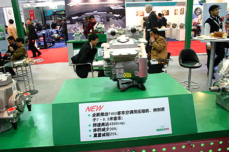【中國客車網(wǎng)訊】:在上海召開的第五屆客車博覽亞洲展會(huì)為客車配件企業(yè)搭建了一個(gè)展示自己的舞臺(tái).比澤爾認(rèn)為低重量和小尺寸是車載空調(diào)壓縮機(jī)應(yīng)用的基本;诔^100000臺(tái)正在使用的4UFCY-4NFCY(400-650CCM)系列壓縮機(jī)的經(jīng)驗(yàn),比澤爾開發(fā)了F400最新型客車空調(diào)用壓縮機(jī),針對(duì)小型客車(8-10M)范圍,轉(zhuǎn)速范圍可以在500-4500轉(zhuǎn)/分之間,更有價(jià)格優(yōu)勢(shì)以代替4UFCY(400CM)和4TFCY(475CCM).
