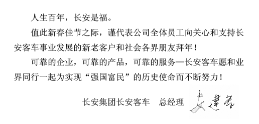 2007長(zhǎng)安客車(chē)總經(jīng)理安建軍 新年賀辭