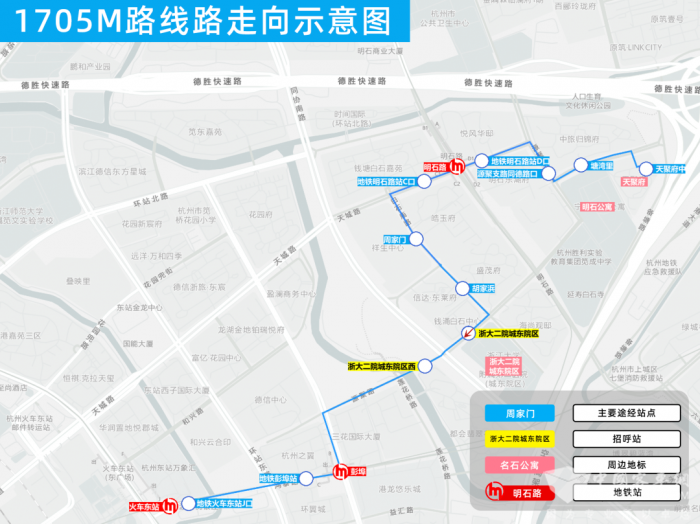 此外,為了進一步擴大公交服務(wù)的覆蓋范圍,1705M路沿途還將增設(shè)浙大二院城東院區(qū)(招呼站)。這一舉措將極大地方便市民乘客前往浙大二院城東院區(qū)就醫(yī),尤其是對于老年和行動不便的人群來說,這一站點的增設(shè)為他們提供了便捷的出行,今后可以直接從家門口、地鐵站“無縫”換乘1705M路,實現(xiàn)從家門口直達醫(yī)院,“點對點”連接。
